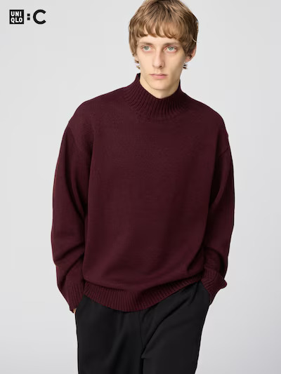 これは2025年に買った中ではトップと言えるほど好きです。60% アクリル, 35% ナイロン, 5% 毛といった混合繊維で、ローゲージ気味なハイネックセーター。ユニクロも毎年様々なニットを出しますが、意外と温かいものは少ない。まだ暑い9月に登場したニットですが、冬のインナーとして温かい部類です。冬場でも屋内ではアウター脱いでこれで過ごせてます。ネックも高すぎないのがいいですね。