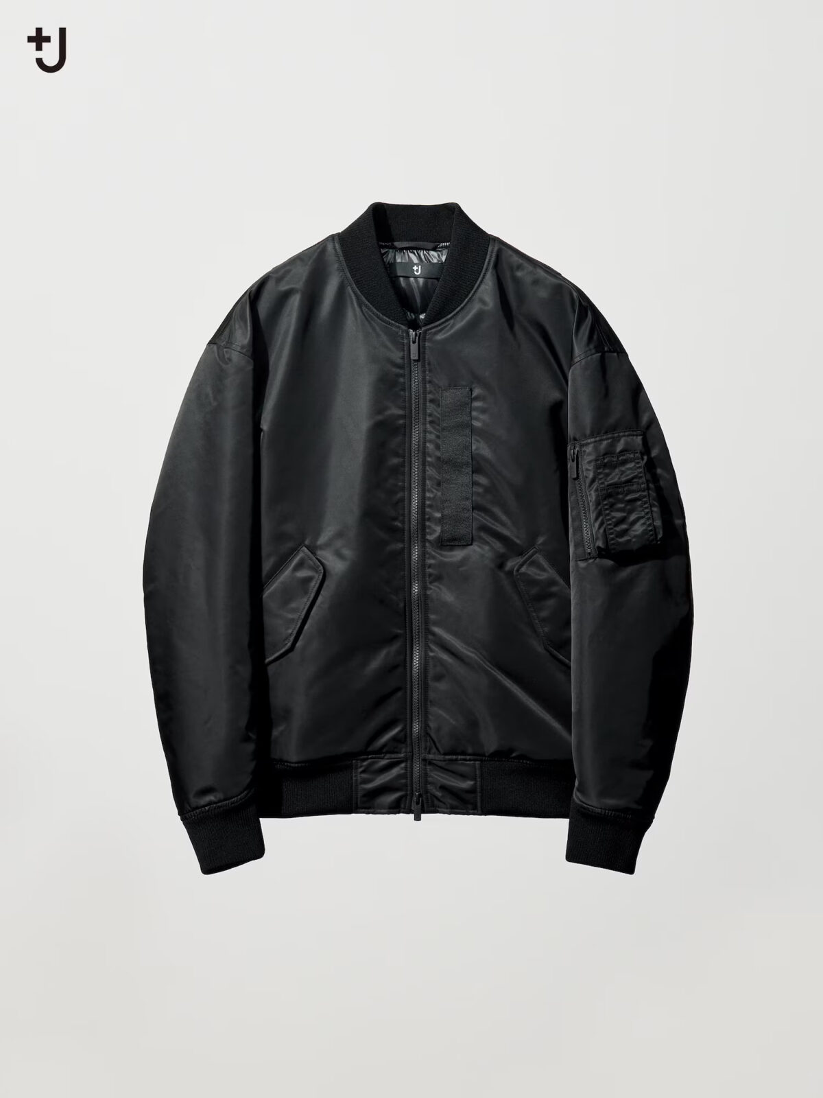 +Jの復刻コラボ品。ファッション Youtuber はこぞって「現代的なシルエットではない」的な評価をくだしている一品。たしかに着用者の骨格によっては非常にダサくなる。肩が張って不格好に見えるとかね。似合う人がかなり絞られたアイテムだとは思う。私はちょうどMA-1がワードローブになかったので即買いしましたが、モノとしての造りはとても良いですね。ジワジワと在庫減ってきているので試着してみましょう。暖かさで言えば春先向きって感じ。私はマイサイズを購入しました。★2